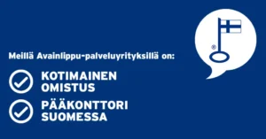 Avainlippu-merkki on kuluttajille luotettava tapa tunnistaa Suomessa tuotettu palvelu ja sen tunnistaakin nykyään noin 90% kaikista suomalaisista. Valitsemalla Avainlippu-merkillä varustetun palvelun voit varmistua siitä, että palvelu on tuotettu Suomessa ja sillä on työllistävä vaikutus kotimaassa.